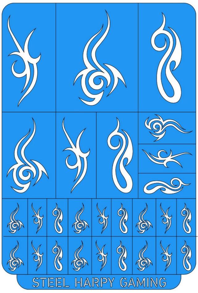 One Steel Harpy Gaming: Dark Tribal Space Elves - Style 3 - Vinyl Stencil is supplied.