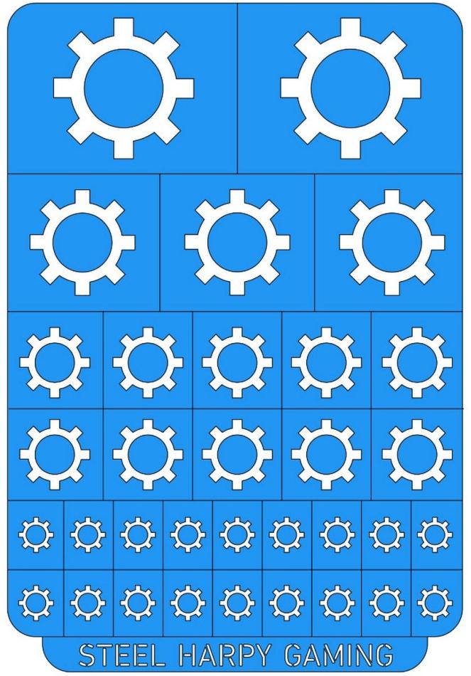 One Steel Harpy Gaming: Large Cogs - Vinyl Stencil is supplied.