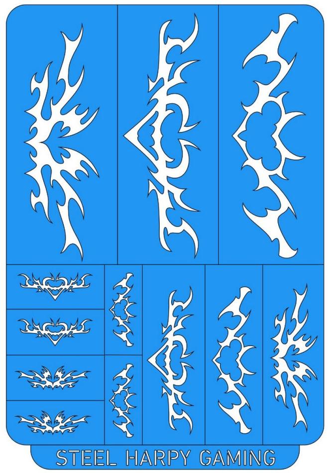 One Steel Harpy Gaming: Dark Tribal Space Elves - Style 1 - Vinyl Stencil is supplied.