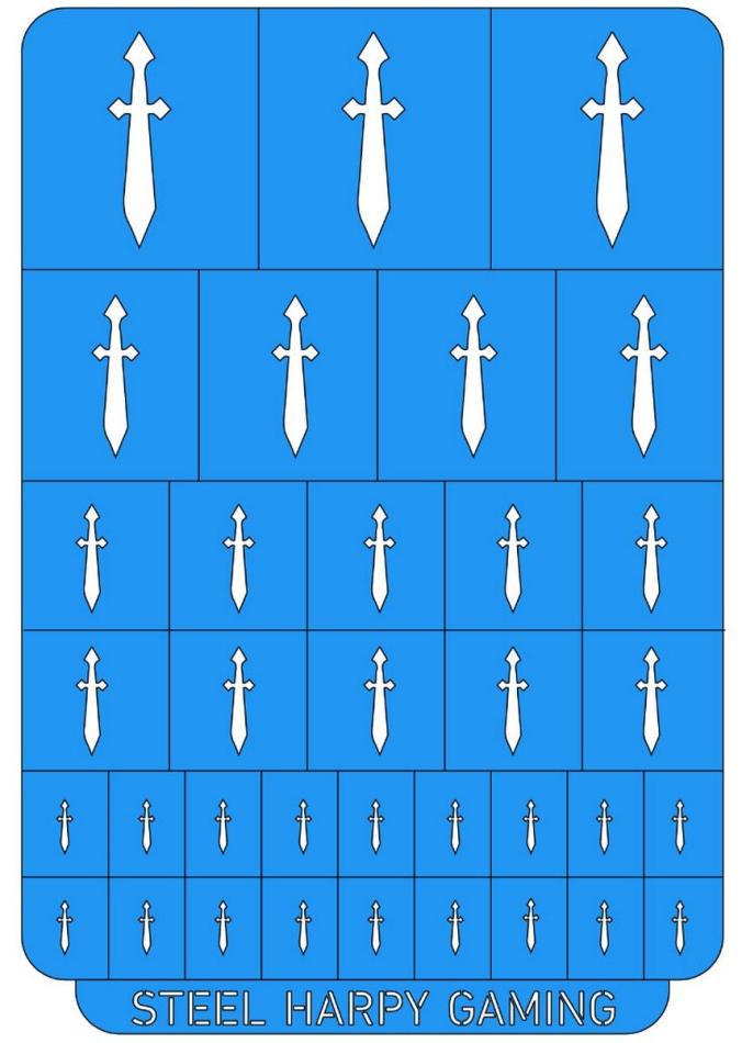 One Steel Harpy Gaming: Large Swords - Vinyl Stencil is supplied.