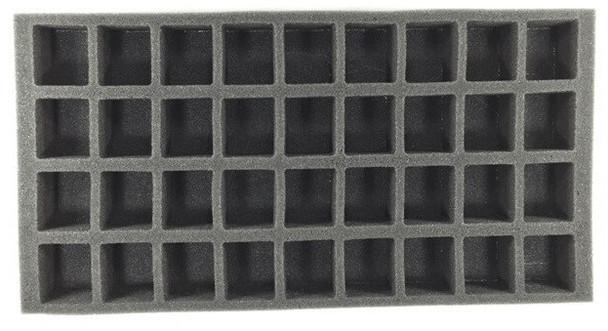 1 inch (25 mm) thick tray with 36x 1 1/4 x 1 1/2 inch (31 x 38 mm) cut outs.