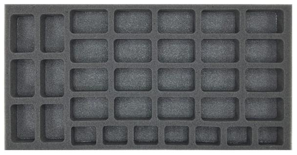 1 inch (25 mm) thick tray with 26x 1 1/4 x 2 inch (32 x 51 mm) cut outs and 7x 1 1/4 x 1 inch (32 x 25 mm) cut outs.