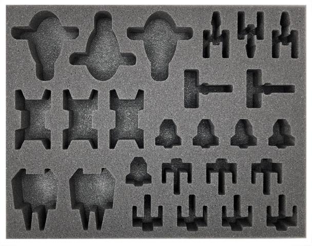 This tray will hold the following game pieces from the Star Wars X-Wing board game: