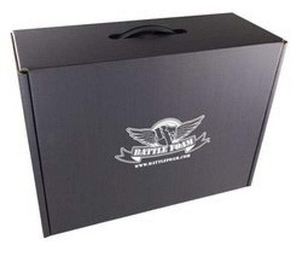 The Battle Foam Eco Box is great for taking armies on the go. The durable cardbox and plastic handle allows for easy and affordable transportation. The box will hold 6 inches of Battle Foam Large (15.5W x 12L") trays. It also holds Battle Foam Small (11.5W x 7.75L") trays side by side. The following trays are included: