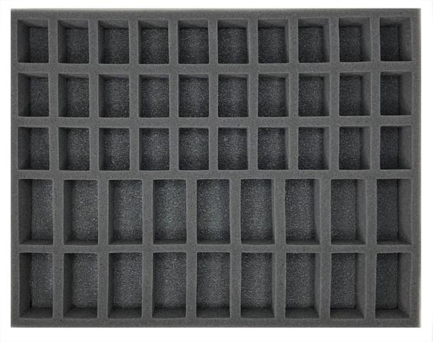 1.5 inch (38 mm) thick tray with 30x 1 1/2 x 1 1/4 inch (38 x 31 mm) cut outs and 18x 2 1/2 x 1 1/4 inch (64 x 31 mm) cut outs.