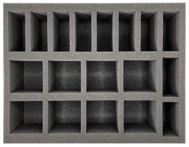 4 inch (102 mm) thick tray with 10x 3 1/4 x 1 3/4 inch (82 x 44 mm) cut outs and 8x 3 x 3 inch (76 x 76 mm) cut outs.