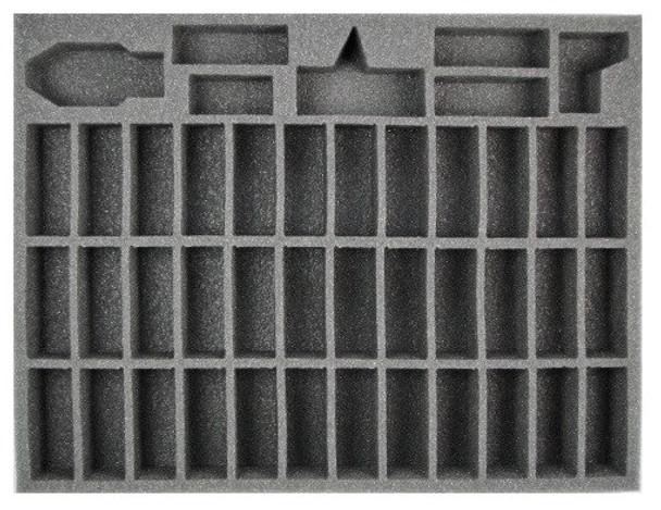 1.5 inch (38 mm) thick tray with 39x 2 3/4 x 1 inch (69 x 25 mm) cut outs and 1x 2 x 1 inch (51 x 25 mm) cuts.