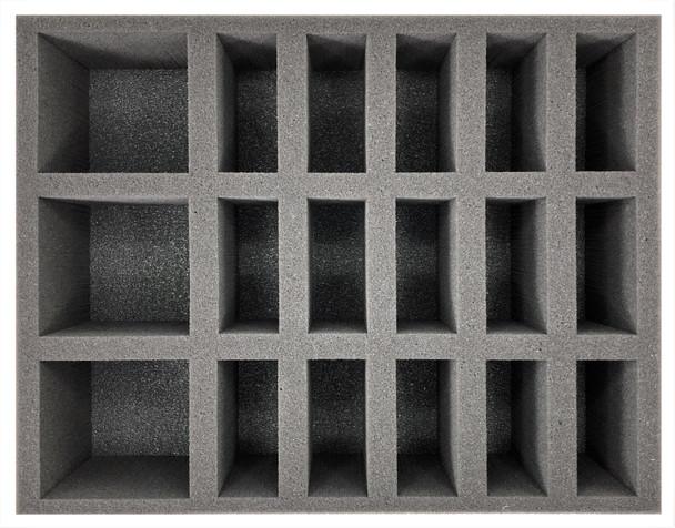4 inch (102 mm) thick tray with 15x 3 1/2 x 1 5/8 inch (89 x 41 mm) cut outs and 3x 3 1/2 x 3 3/4 inch (89 x 95 mm) cut outs.