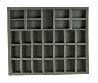 1 inch (25 mm) thick tray with 21x 2 x 1 1/4 inch (50 x 32 mm) cut outs, 8x 2 1/4 x 1 1/4 inch (57 x 32 mm) cut outs and 1x 3 x 1 1/2 inch (76 x 38 mm) cut outs.