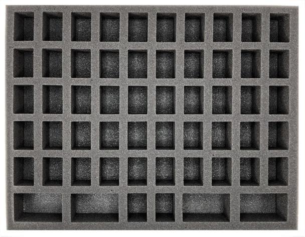 1.5 inch (38 mm) thick tray with 52x 1 1/2 x 1 inch (38 x 25 mm) cut outs and 4x 2 1/2 x 1 1/2 inch (64 x 38 mm).