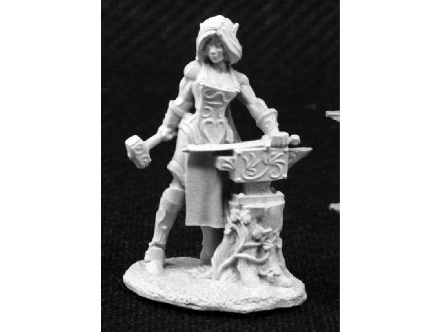 Laril Silverhand is a female elven blacksmith model in 25mm heroic scale from the Reaper Dark Heaven Legends range. Sculpted by Bobby Jackson. Cast in pewter, supplied unpainted and may require some assembly.