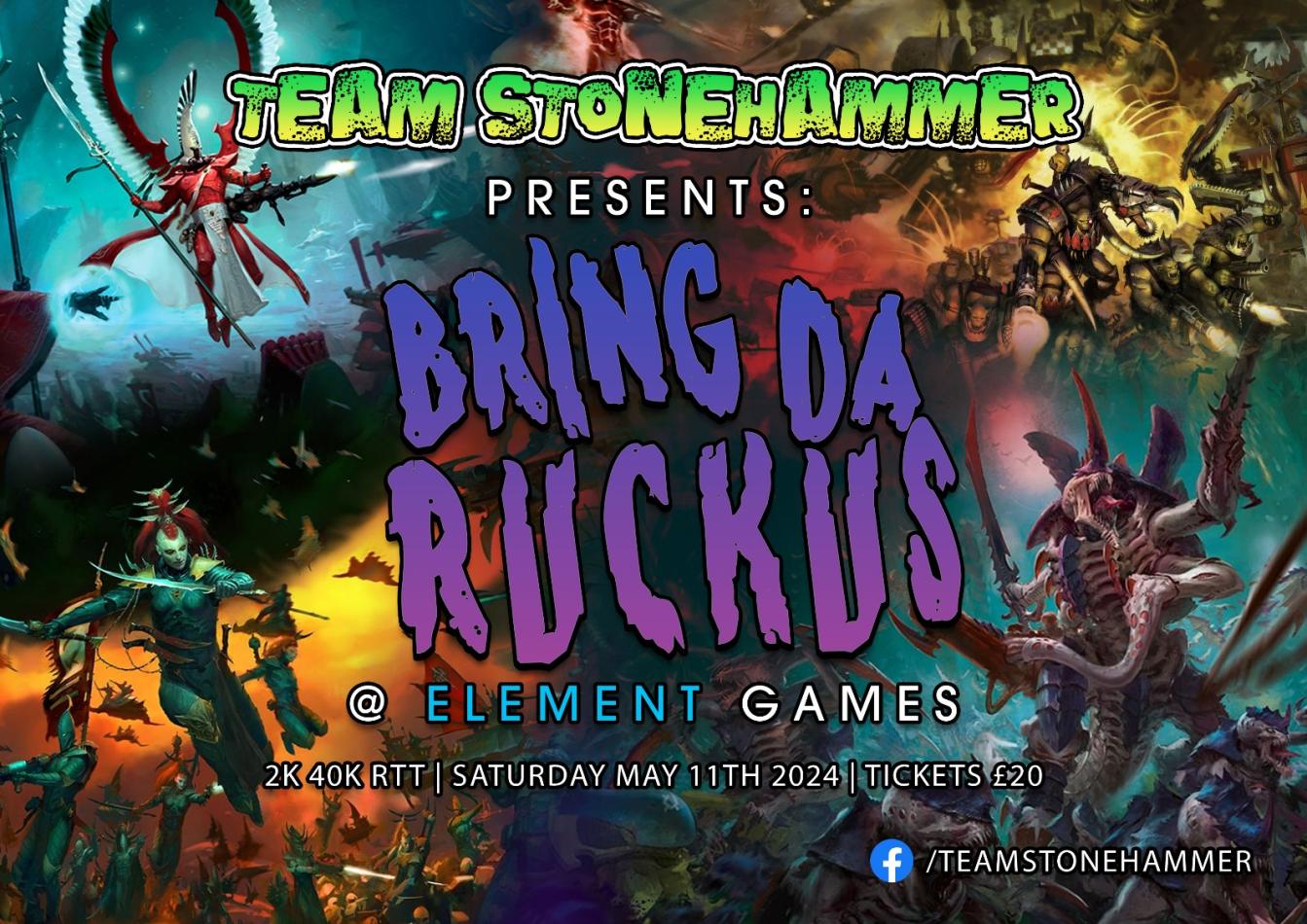 Bring Da Ruckus is 3 games of competitive Warhammer 40,000 10th edition using 2,000 point armies. Being held here at Element Games in Stockport. Each table will be using a full set of Glasshammer Gaming terrain.