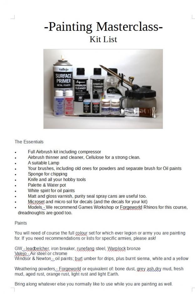 The course will be tailored to everyone's needs by telling you which materials and products you need to bring along to paint a model from your army. All you need to do is e mail us at