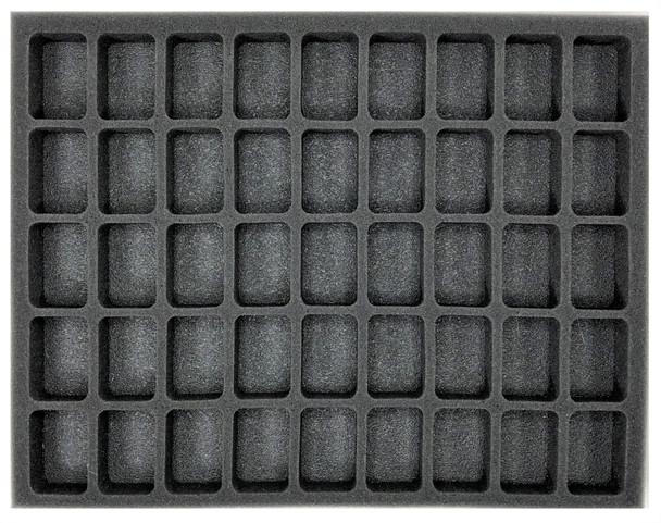 1 inch (25 mm) thick tray with 45x 1 x 2 inch (25 x 51 mm) cut outs.