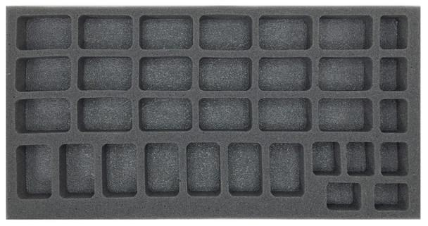 1 inch (25 mm) thick tray with 25x 2 x 1 1/2 inch (51 x 38 mm) cut outs and 8x 1 1/2 x 1 inch (38 x 25 mm) cut outs.