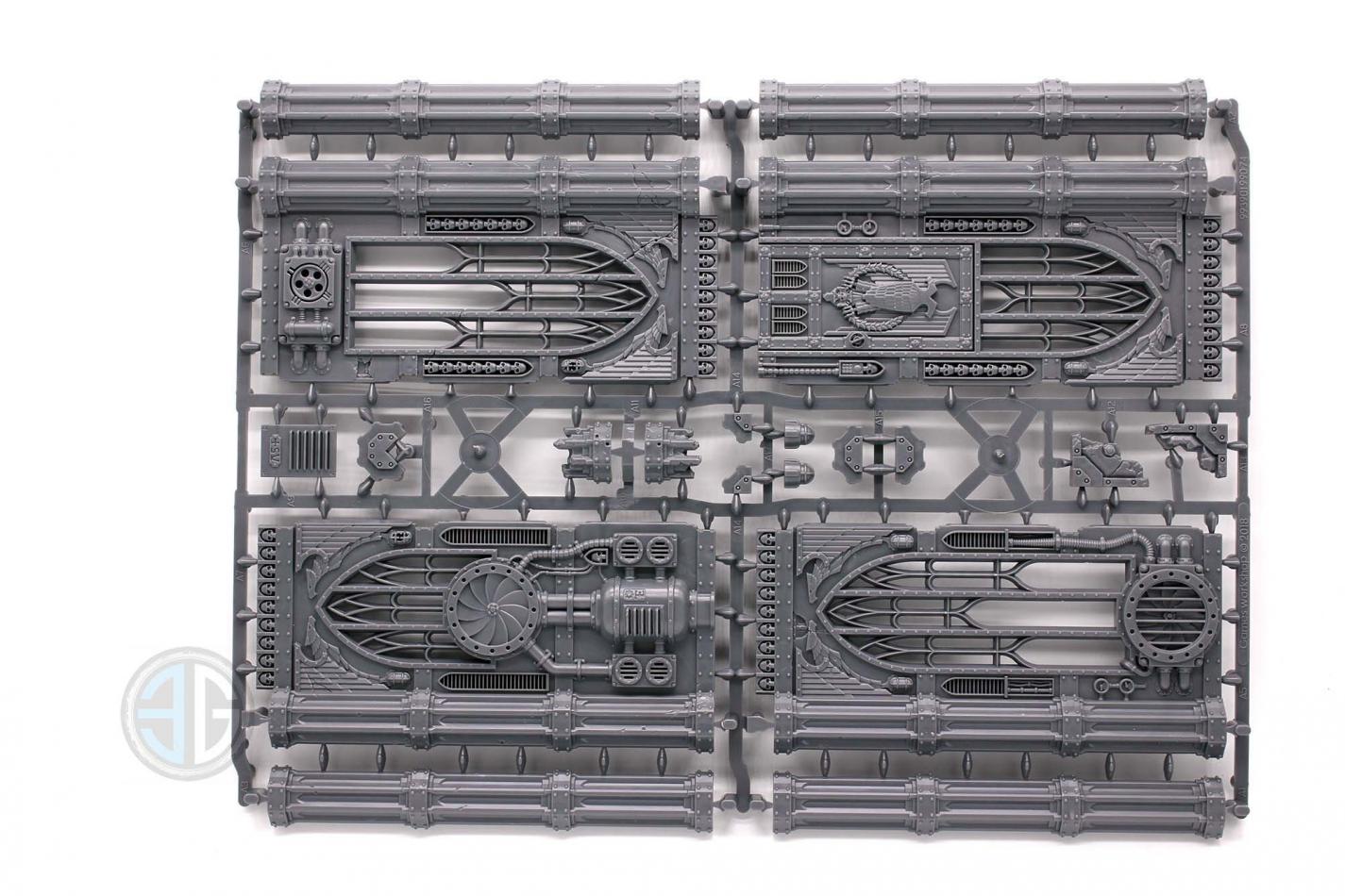 - A frame of 4 wall sections, covered in Imperial iconography (and skulls!), with 4 columns, 3 column top pieces (1 ruined), a vent and 2 small lamps;