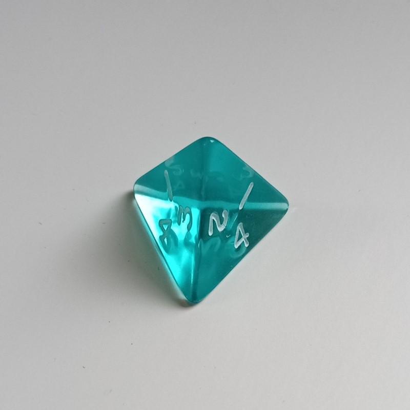 A Gem Aquamarine D4 4-Sided Polydice. This translucent plastic die is approximately 20mm in size, which is the size used in most polydice sets.