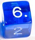 A Gem Blue D6 6-Sided Polydice. This translucent plastic die is approximately 20mm in size, which is the size used in most polydice sets.