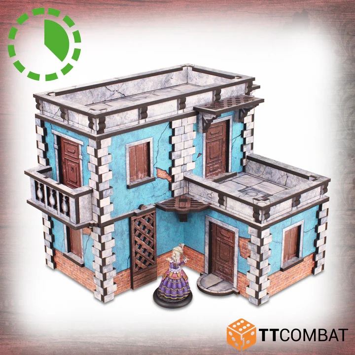 The Casa Sofia kit is made from 3mm Pre-Coloured MDF using hard-wearing UV Ink. It is a great scenery kit to use in sci-fi skirmish games and will work perfectly with 28-32mm games and miniatures.