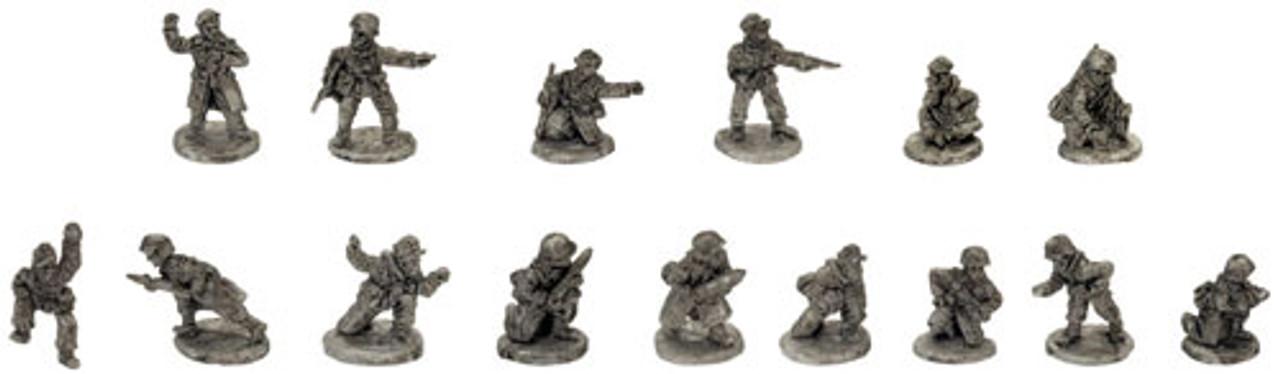 The Anti-tank Group (Winter) contains enough figures to create two Commands teams. One command contains one of each of the officier figures and a single rifleman while the other contains an officier figure (Figure B), the NCO and the remaining rifleman. Command teams are modelled on the small three-hole bases.
