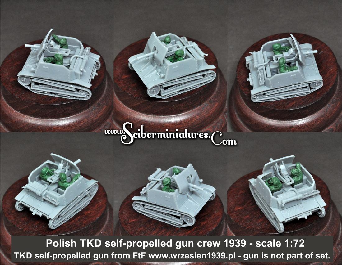 Polish TKD self-propelled gun crew 1939. This 2 miniatures are made of high quality resin. Figures are unpainted andrequires assembly. TKD gun model is not part of set. Gun is FtF production.