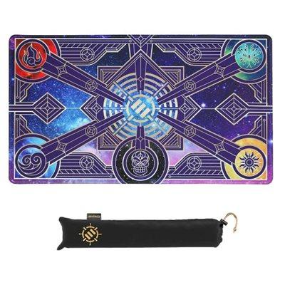 inspired card playmat showing the five MTG elements along with the Enhance logo