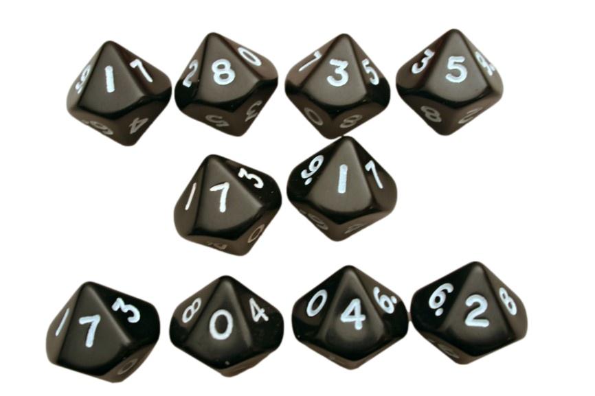 Opaque Dice BLACK Bag of 10 D10 0-9 Product Description