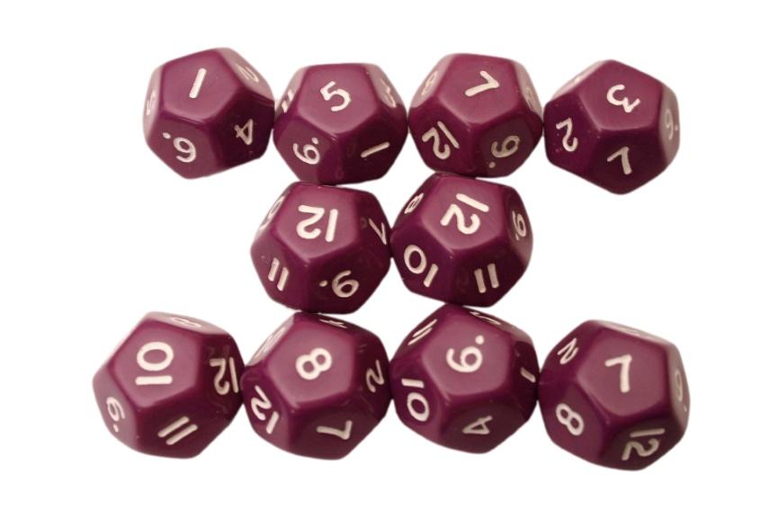 Opaque 10 x 12-Sided Dice Set - Purple